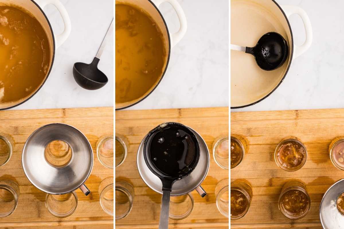 Remove the pot from the heat and skim off any foam. Ladle the hot jelly into hot jars, leaving 1/4 inch headspace.