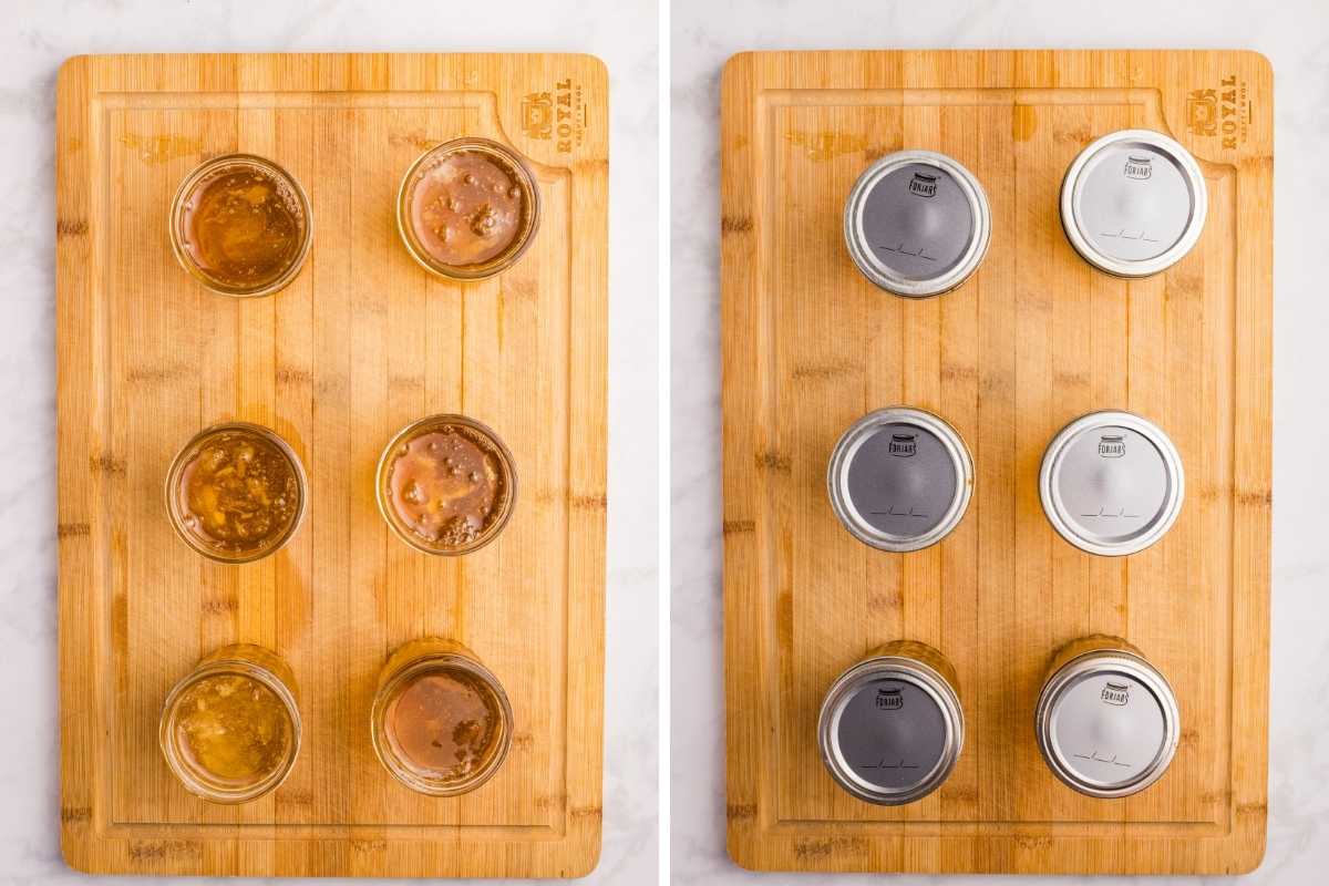 Turn off the heat and let the jars sit in the canner for 5 minutes. Remove the jars and set them on a towel or cooling rack where they can sit undisturbed for 12 to 24 hours.