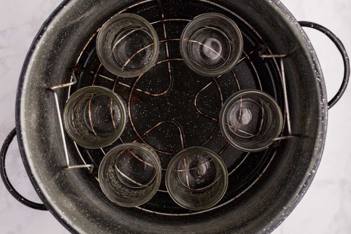 Wash your jars, then place them in your water bath canner. Fill the canner so the jars are fully submerged and bring the water to a simmer while you make the jelly.