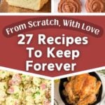 Inside: A carefully chosen list of from-scratch recipes every homemaker should have up her sleeve. From breakfast for houseguests to a side dish that stretches a dollar to a birthday party classic, these are the staples that will be with you for life. I’ve thought hard about each one.