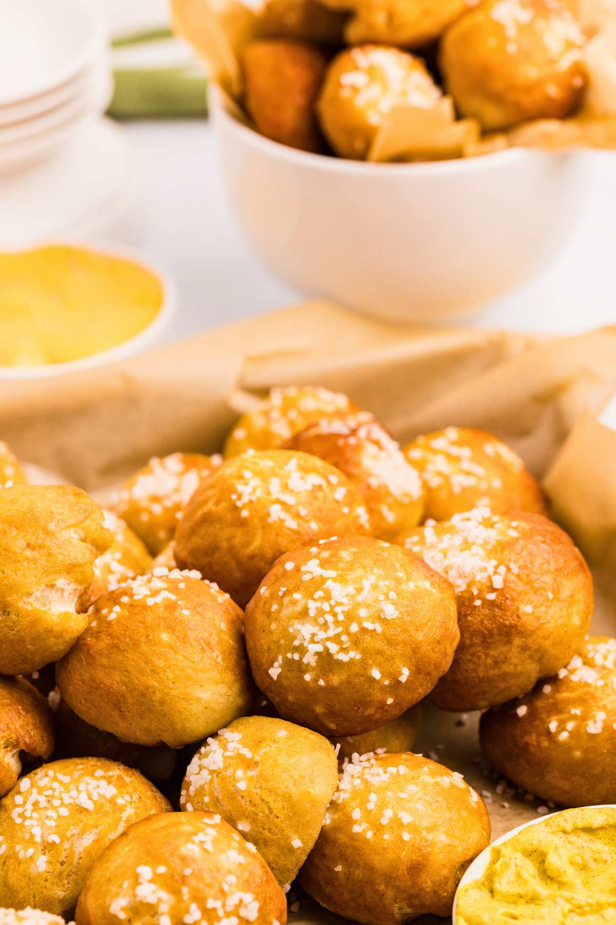 You’ll want a dipping sauce for these. My family’s absolute favorite pairing is a warm beer cheese, but a quick homemade honey mustard (just whisk together equal parts honey, mayonnaise, and Dijon) is always popular too.